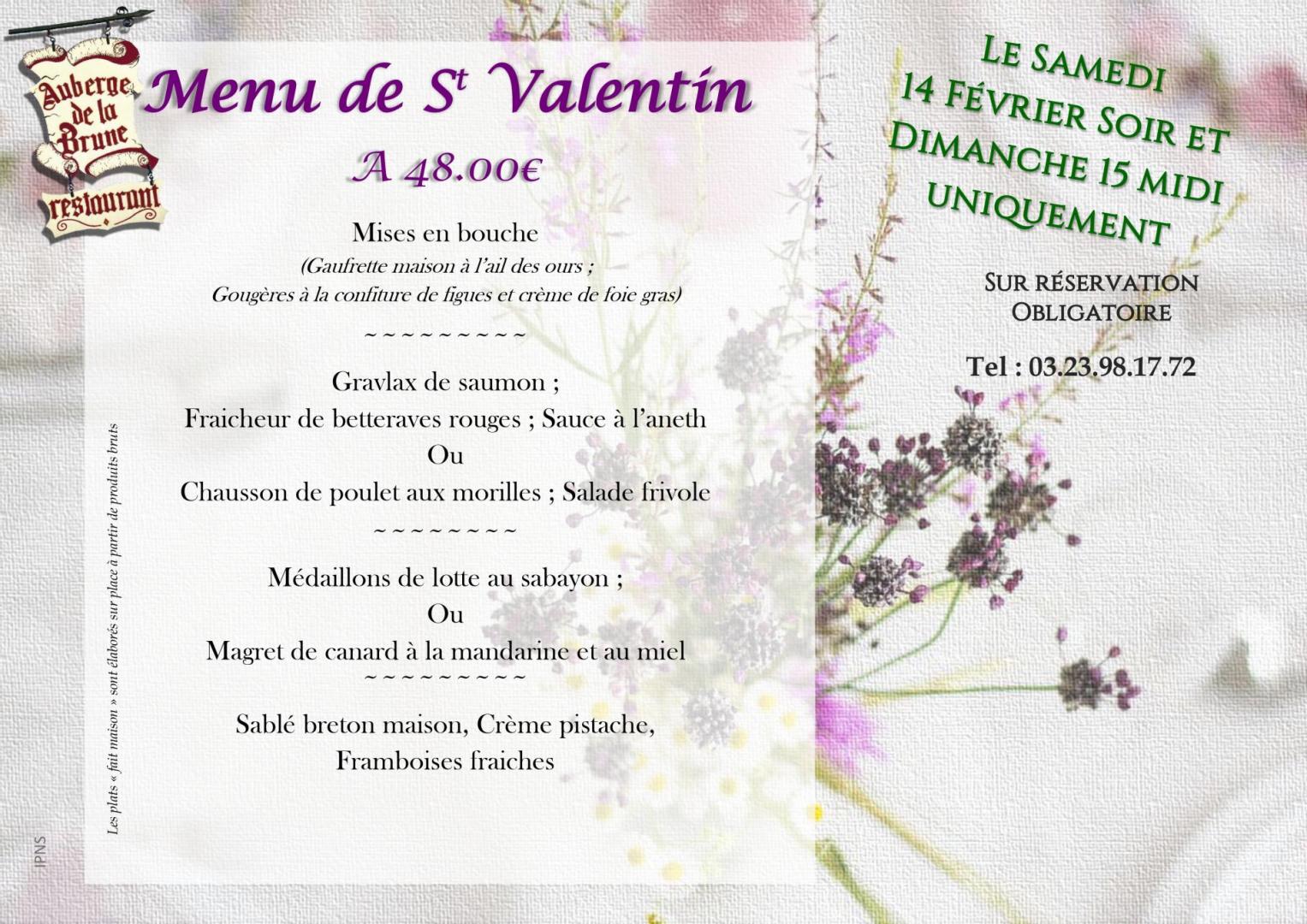 Menu unique pour le diner du 14 Février et déjeuner du 15 Février.